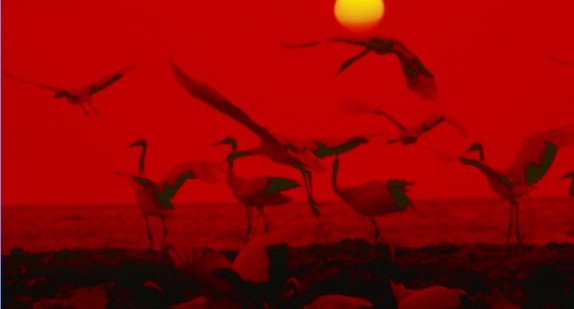 云蒸霞蔚旭日新,鶴舞朝陽火燒云。