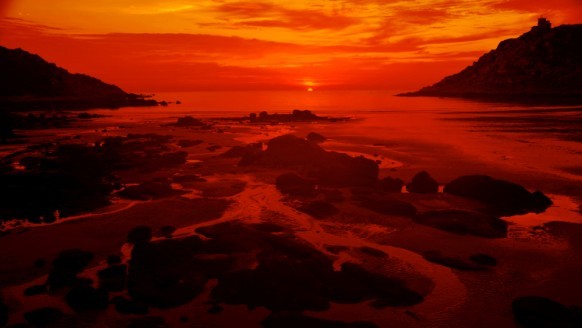 七彩云霞胭脂染 ,霞浦日出紅爛漫。