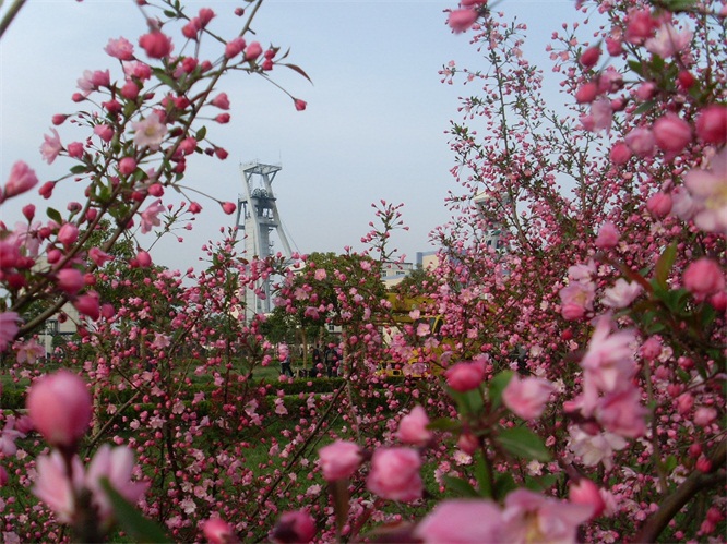 一是界溝煤礦變美了。當(dāng)你跨進(jìn)界溝煤礦大門,展現(xiàn)在我們眼前的是一幅大氣磅礴的當(dāng)代礦工創(chuàng)作的寫實(shí)作品。高大的煤倉,巍巍的井塔,聳立在藍(lán)天大地之間,錯略有致的工業(yè)建筑群有藍(lán)、紅相間皮帶走廊相連,粉刷一新的各類建筑物點(diǎn)綴其間,掩映在綠樹叢中,更加顯得生機(jī)昂然。礦內(nèi)的平安大道橫貫?zāi)媳保P直坦蕩,兩旁路燈流光溢彩,成為一道亮麗的風(fēng)景線;近處大片姿態(tài)各異的樹木、花草、遠(yuǎn)物近景把美表現(xiàn)得淋漓盡致、和諧統(tǒng)一。整個主副井工業(yè)區(qū)在碧水的環(huán)繞下形成了一個“三面花香四面柳,湖光碧水潤荷藕”的美麗佳境,不知情的人不會相信這是煤礦。置身其中,你會發(fā)現(xiàn)今天的界溝煤礦清潔怡然、生機(jī)勃勃,亭臺樓閣、曲橋假山再現(xiàn)了江南園林的雅致精巧,形成了古今建筑的完美結(jié)合,真是美不勝收,令人賞心悅目。體現(xiàn)了現(xiàn)代煤礦豐厚的文化內(nèi)涵和時尚風(fēng)情,面對這眼前的一切,作為界溝人無不為之動容和自豪。