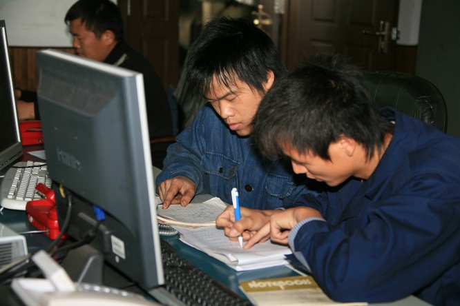 青工們在認(rèn)真鉆研技術(shù)業(yè)務(wù)