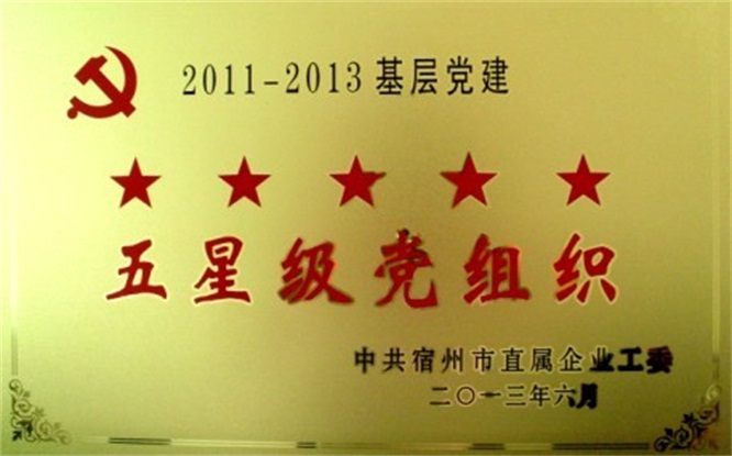 集團(tuán)公司黨委榮獲中共宿州市直屬企業(yè)工委頒發(fā)的五星級(jí)黨組織稱號(hào)