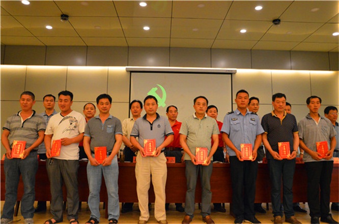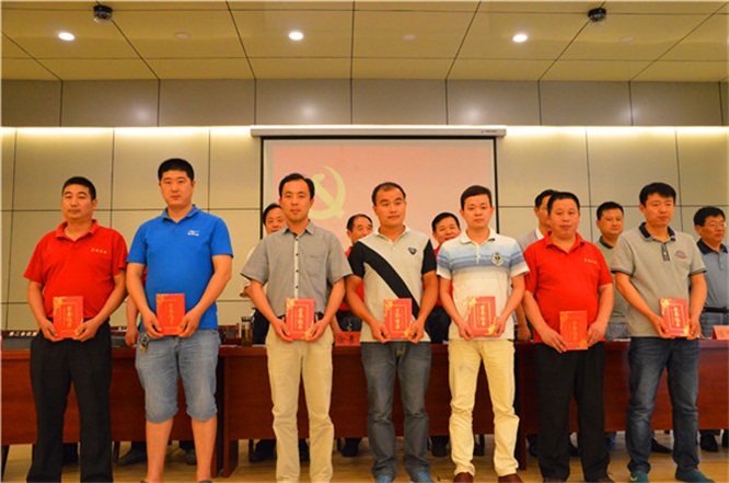 尹湘成、趙永欣、孫作峰、梁昌東、王號(hào)、張建、劉建、盛懷良八名優(yōu)秀共產(chǎn)黨員上臺(tái)領(lǐng)獎(jiǎng)