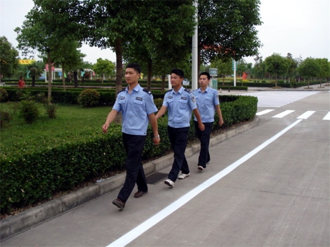 礦保衛(wèi)科執(zhí)勤人員在廣場巡邏