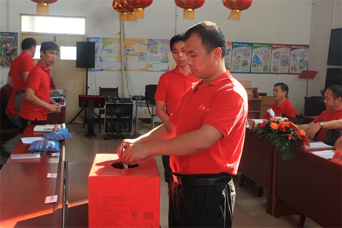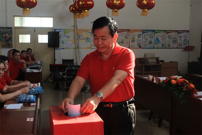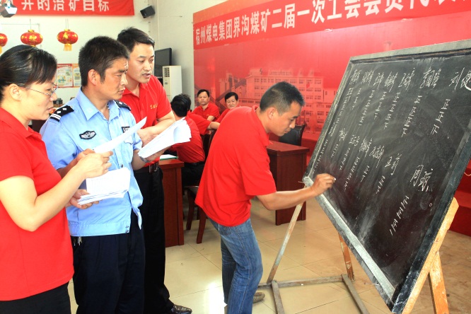 礦長王尙令在界溝煤礦二屆一次工會代表大會上投票