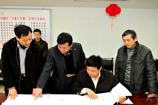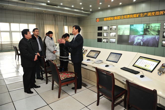 公司顧問周開才在向安徽煤礦安監(jiān)局副局長吳衛(wèi)龍介紹界溝煤礦安全綜合治理情況