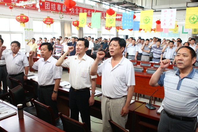安全月活動(dòng)大會(huì)上礦領(lǐng)導(dǎo)和基層領(lǐng)導(dǎo)舉行安全宣誓儀式