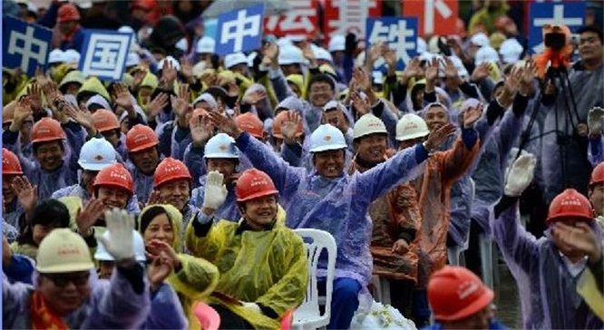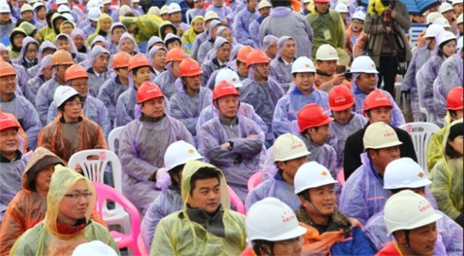 大橋建設(shè)者冒雨觀看藝術(shù)家的精彩演出
