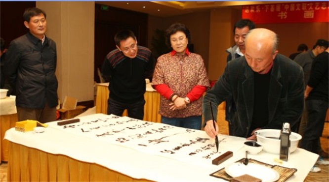 省書(shū)協(xié)主席李士杰在筆會(huì)現(xiàn)場(chǎng)揮毫潑墨