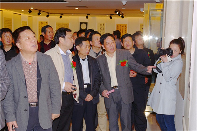 安徽省書法家協(xié)會主席李士杰陪同嘉賓參觀展覽