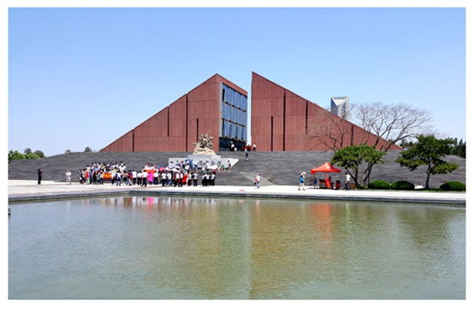 在孟良崮戰(zhàn)役紀念館前合影留念