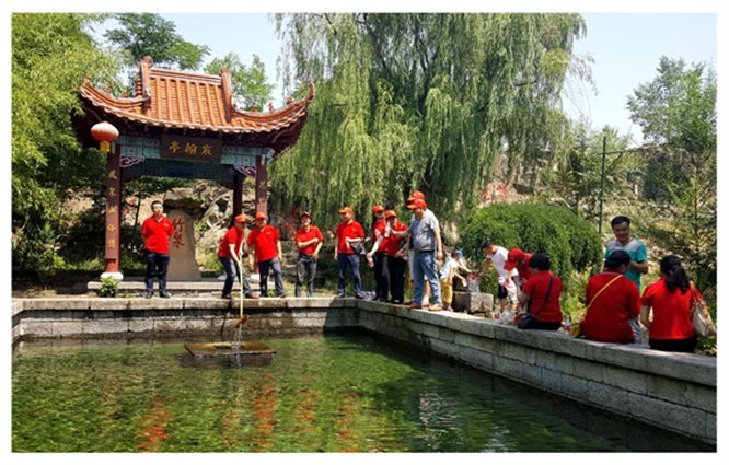 同志們品嘗老區(qū)竹泉村的清泉池泉水