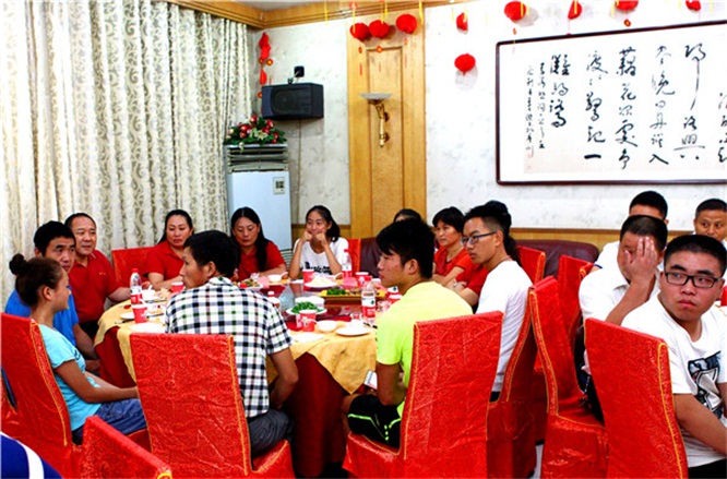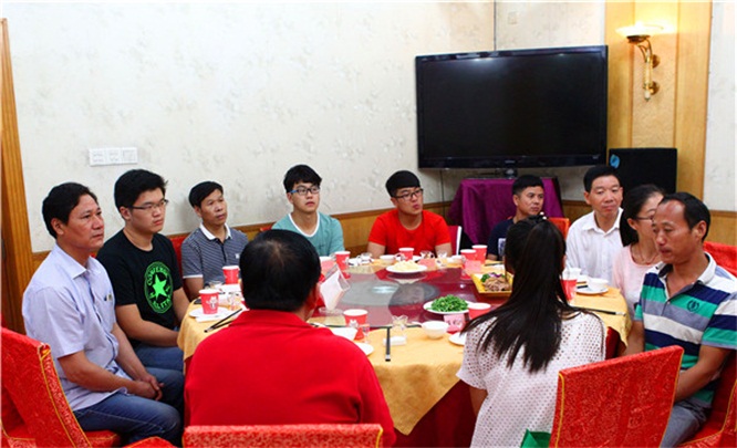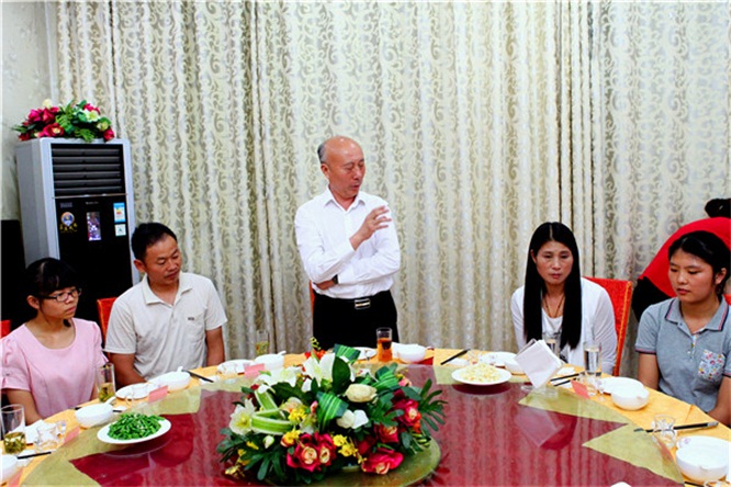 公司總經(jīng)理會(huì)后設(shè)宴款待了高考大學(xué)生和同學(xué)們家長(zhǎng)