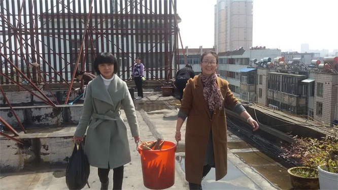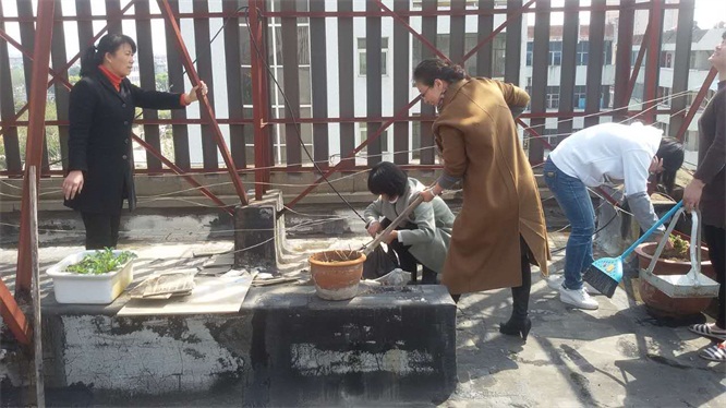 財(cái)務(wù)處兩位女工也放下手頭的工作加入了義務(wù)勞動(dòng)的隊(duì)伍