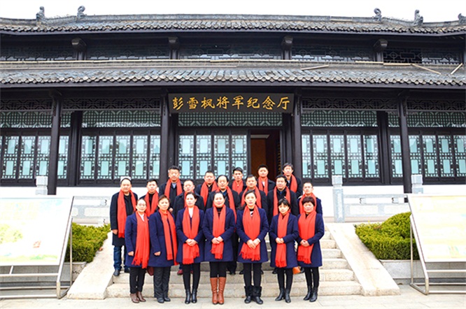 ▲黨員和入黨積極分子在彭雪楓將軍紀(jì)念廳合影留念