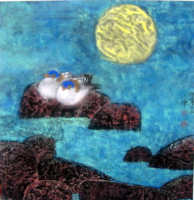 作品追求溫馨,恬靜,自然的藝術氛圍,強調(diào)生物間的和睦相處,自然界高度純靜;在構圖和色彩上大膽創(chuàng)新,受到畫家的關注,被認為“有個人風格,有發(fā)展前途的中青年花鳥畫家?!泵佬g評論家王伯敏先生對岳耀民的美術作品給予高度評價,并欣然題詞:“耀民之畫為花鳥傳神?!?