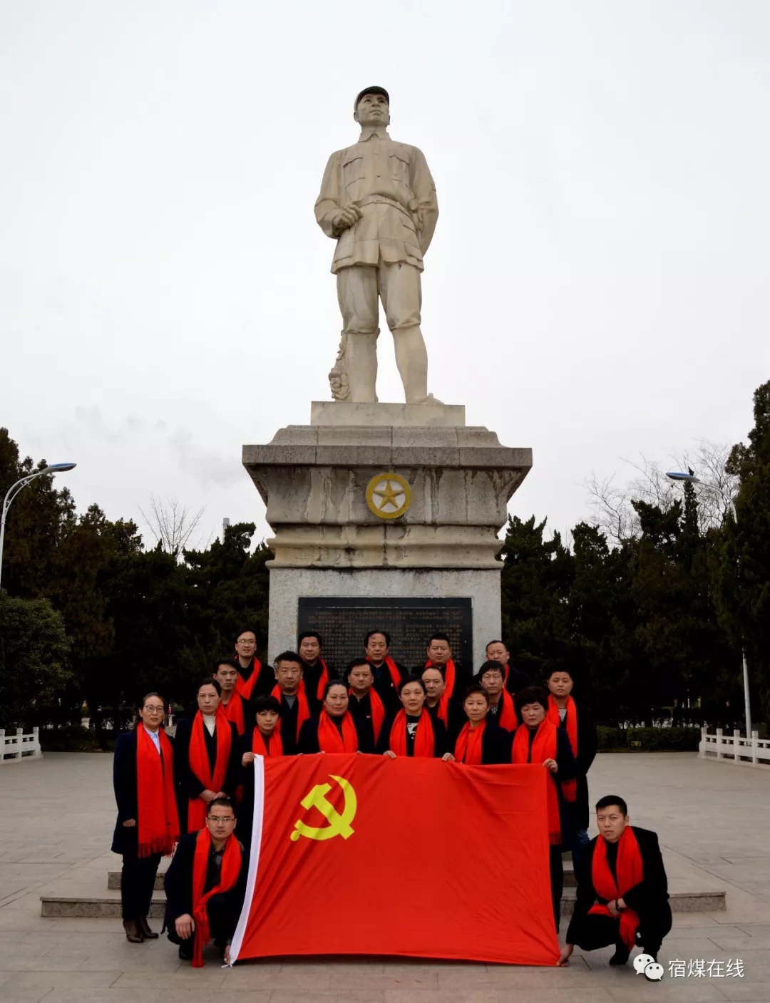 ▲公司機關黨員和入黨積極分子在彭雪楓雕像前合影留念