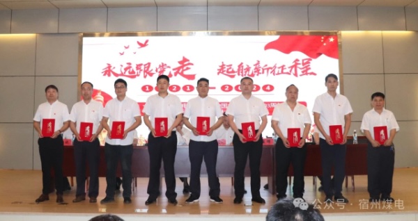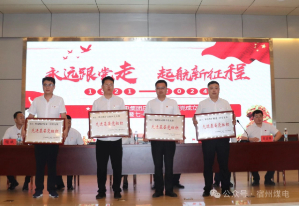 集團(tuán)公司值班經(jīng)理、黨委委員、財(cái)務(wù)總監(jiān)李敏宣讀了中共宿州煤電(集團(tuán))有限公司委員會(huì)《關(guān)于表彰2023-2024年度先進(jìn)基層黨組織和優(yōu)秀共產(chǎn)黨員、優(yōu)秀黨務(wù)工作者的決定》(宿煤黨字〔2024〕7號(hào)),授予界溝煤礦綜采二區(qū)黨支部等 4個(gè)黨支部“先進(jìn)基層黨組織”榮譽(yù)稱號(hào),授予邵林濤等27名同志“優(yōu)秀共產(chǎn)黨員”稱號(hào),授予張博等6名同志“優(yōu)秀黨務(wù)工作者”稱號(hào)。