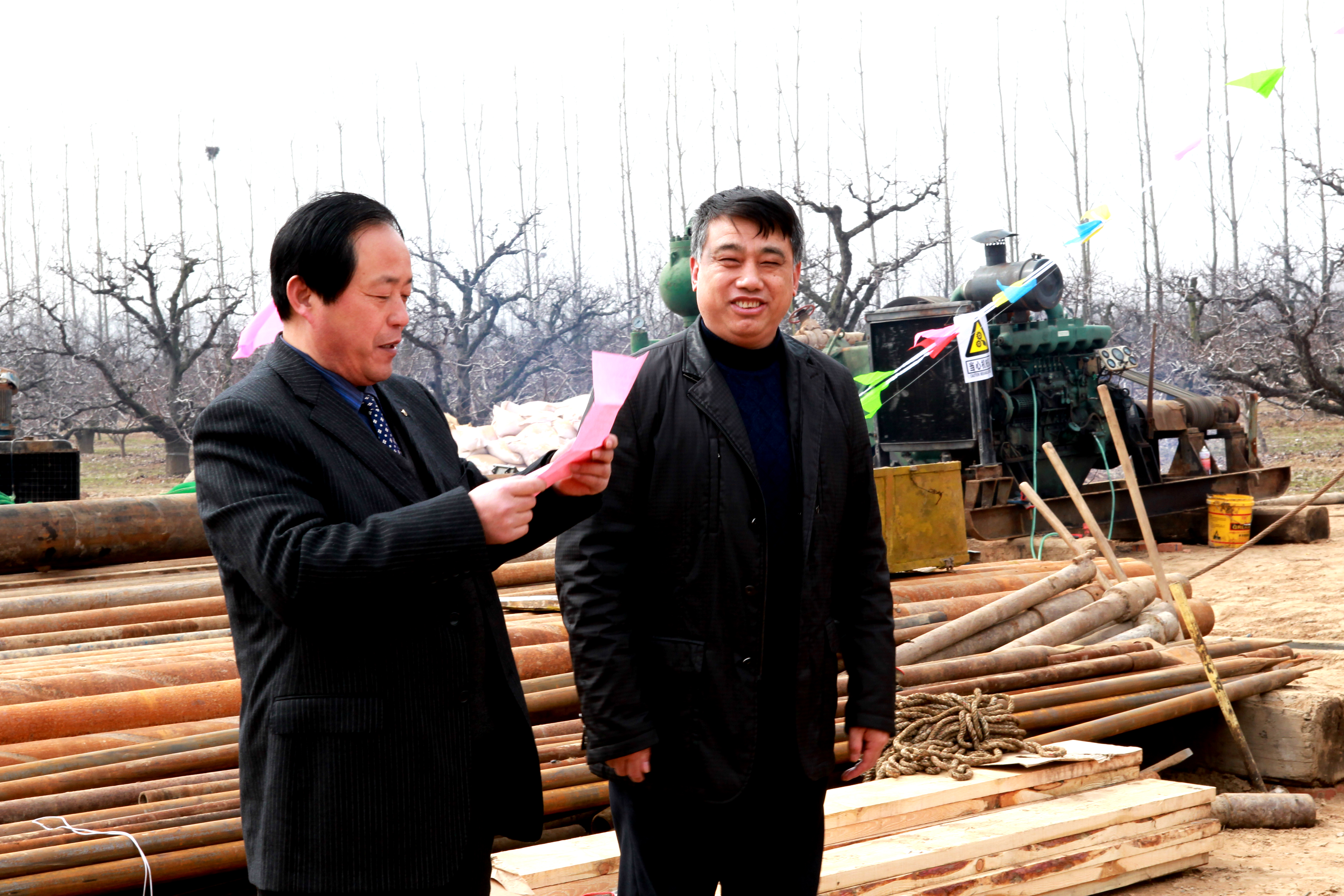 碭山縣政協(xié)主席郭德社宣布碭山縣北部煤炭普查01號(hào)孔開(kāi)鉆(右一).