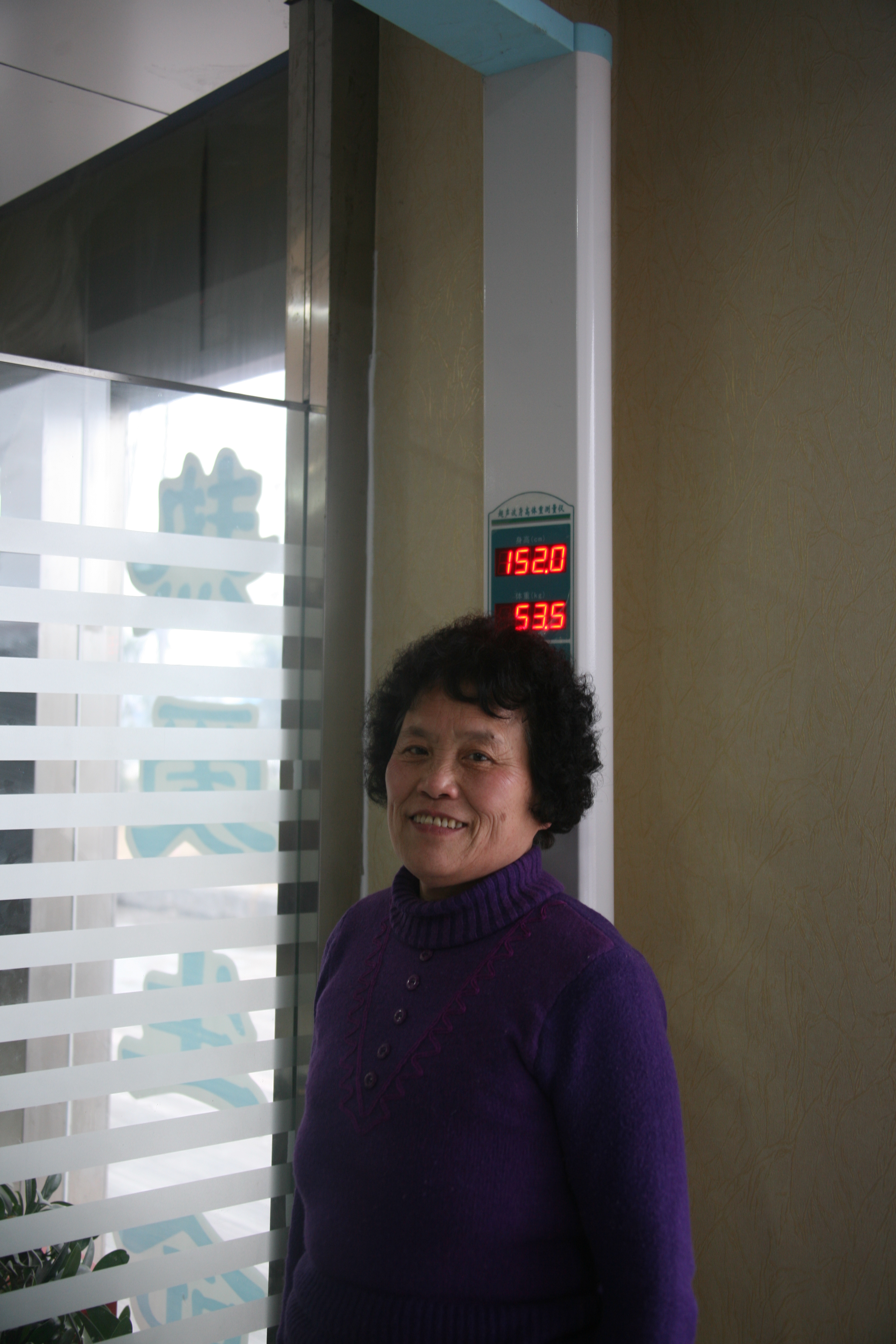 圖為女工在測量身高、體重