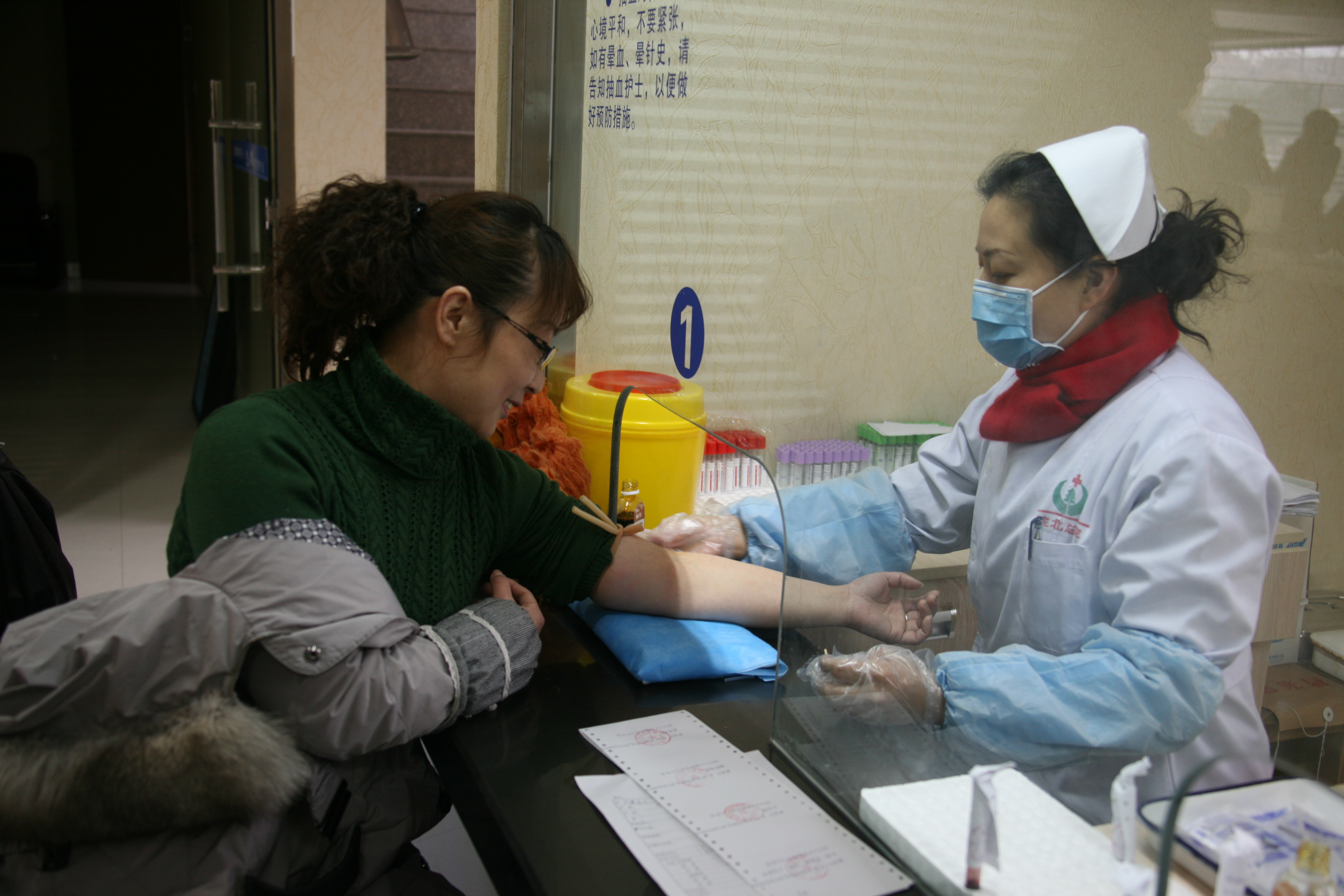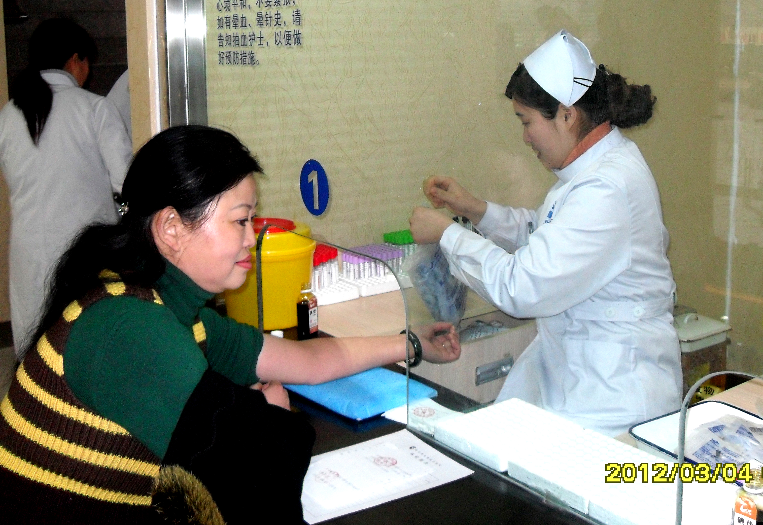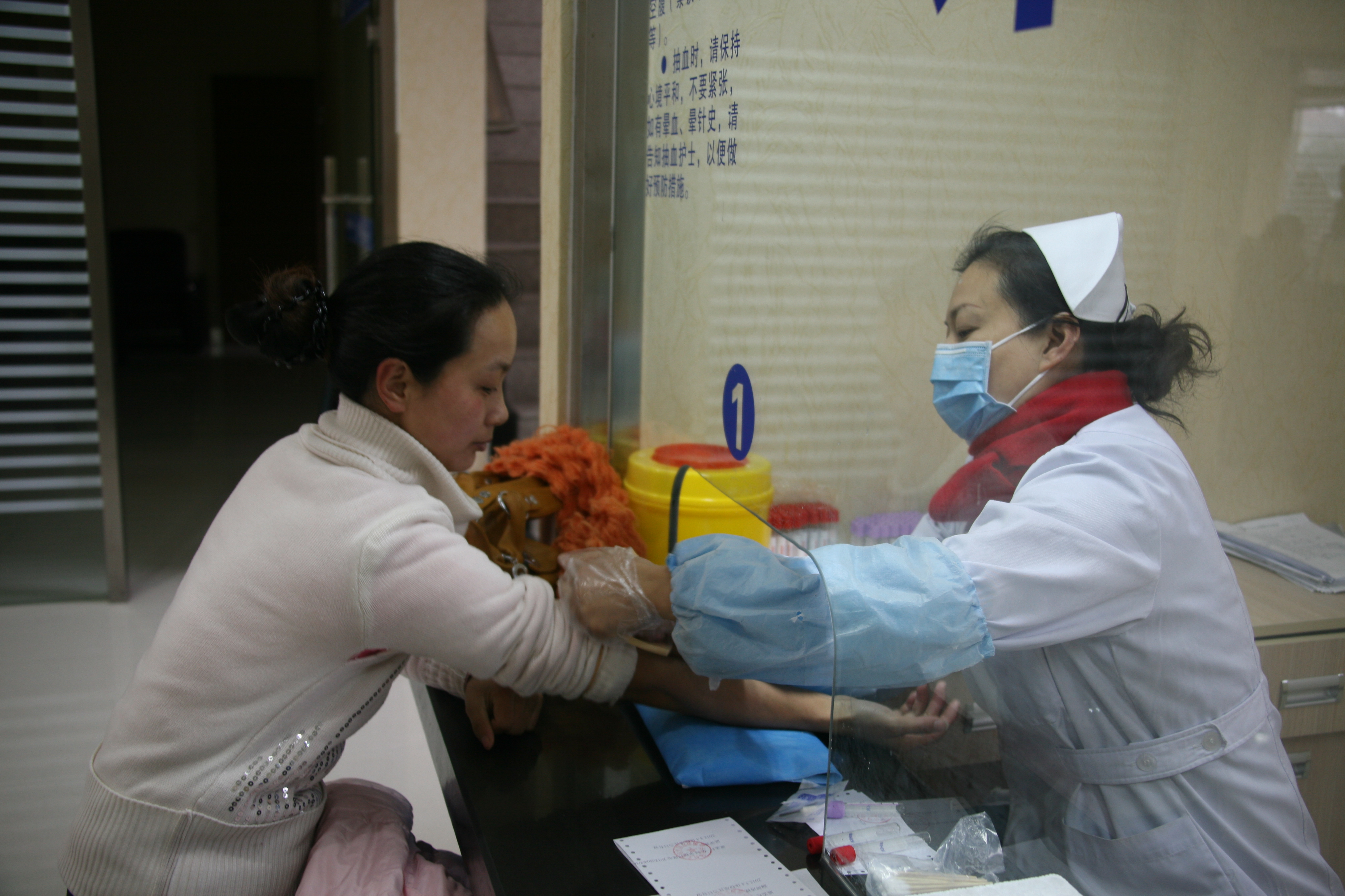 圖為女工體檢---采血樣