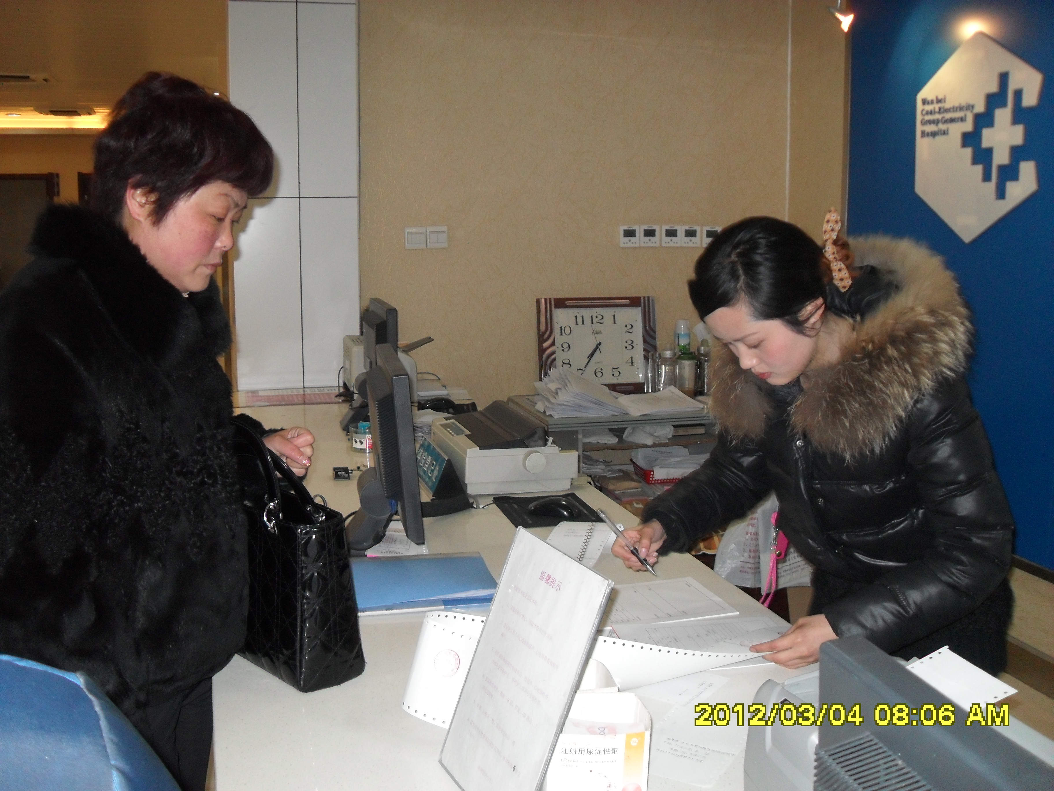 圖為女工在體檢中心大廳辦理體檢手續(xù)