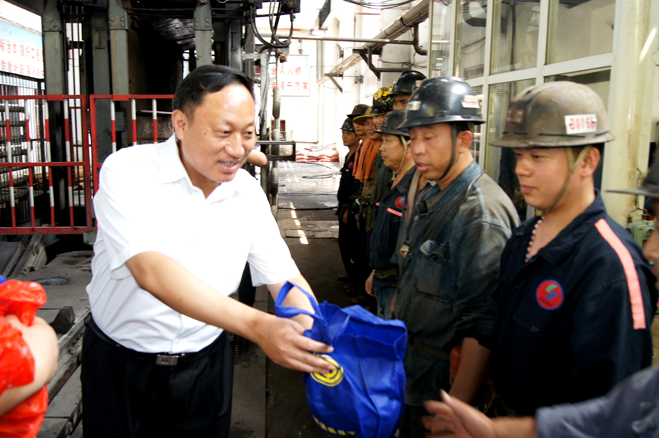 李相軍主任在界溝煤礦副井口慰問冒高溫堅持在崗位上的職工